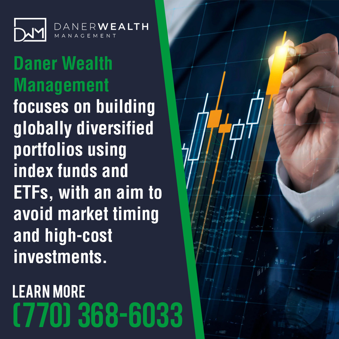 Daner Wealth Management works with clients in Alpharetta, Roswell, Milton, Sandy Springs, and Johns Creek. This investment management firm focuses on building globally diversified portfolios using index funds and ETFs, with an aim to avoid market timing and high-cost investments.
